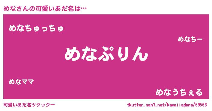 | 女子向けラノベタイトル風あだ名 | 『めなの玉の輿計画!』『闇のめな』 |