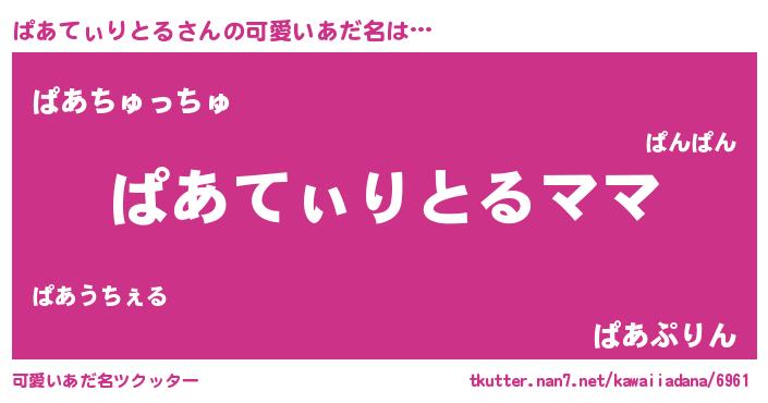 | ヘコむあだ名 | 『ぱあてぃりとる(遠い目)』『ぱあふぇ~』 |
