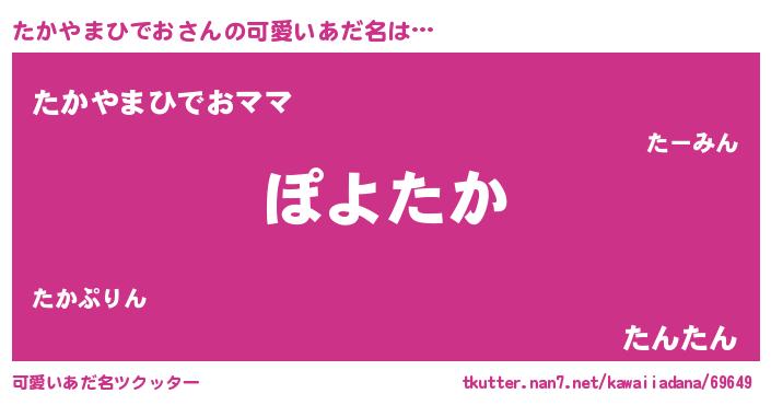 | ヒーロー風カッコイイあだ名 | 『仮面タカダー』『ネオタカヤマヒデオ』 |