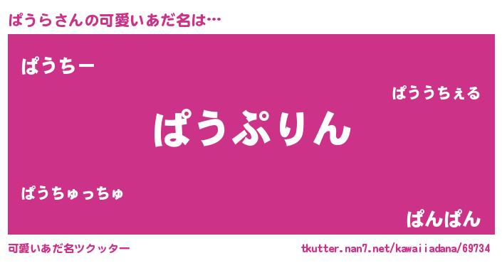 | 男性向けラノベタイトル風あだ名 | 『ぱうら~年齢イコール彼女いない歴の魔法使い~』 |