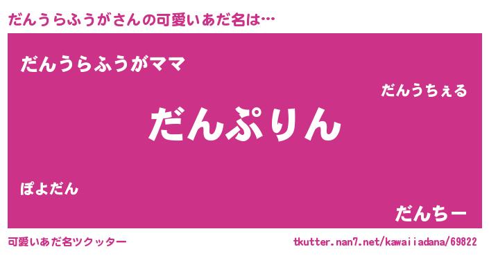 | 女子向けラノベタイトル風あだ名 | 『だんうらふうがの玉の輿計画!』 |