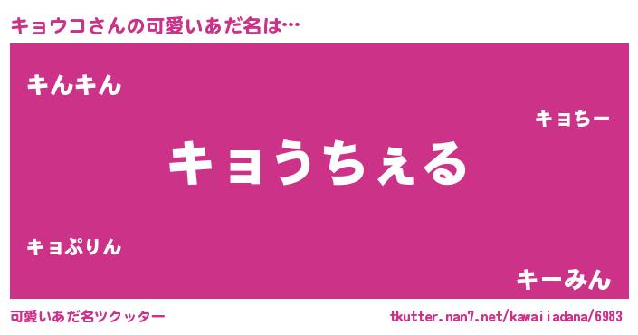 | ヒーロー風カッコイイあだ名 | 『サイバー戦士キョウコ』『仮面キョダー』 |