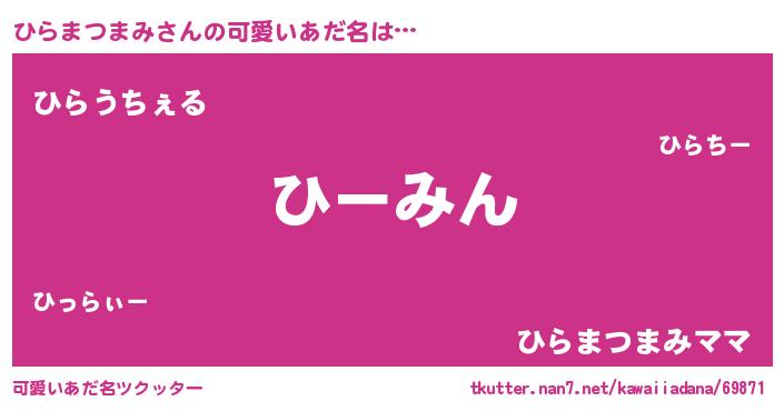 | ヘコむあだ名 | 『ひらまつまみ(遠い目)』『酢こんぶ』 |