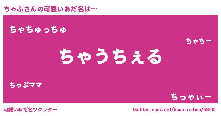 | ヒーロー風カッコイイあだ名 | 『最強戦士チャプ』『慈愛の使者ちゃぷ』 |
