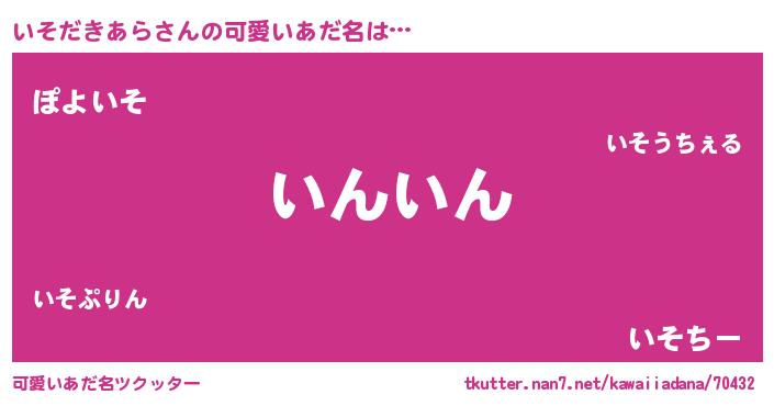 | 恥ずかしいあだ名 | 『プリティーいそだきあら』『いそっちょ』 |