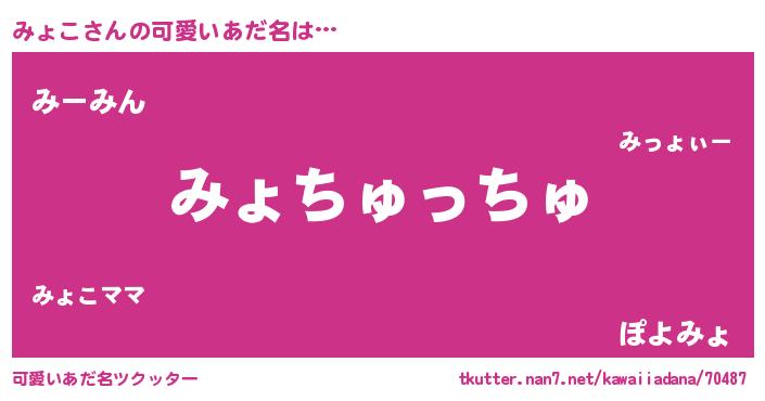 | 欧米人風あだ名 | 『ダニエルみょこ』『アンジェラ・みょこ』 |