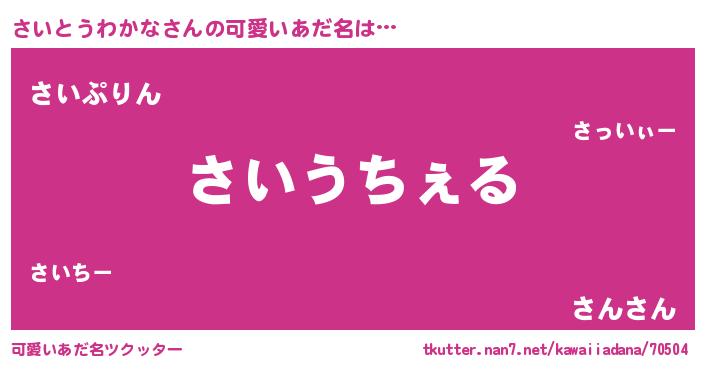 | 男性向けラノベタイトル風あだ名 | 『Re:さいとうわかなから始める異世界生活』 |