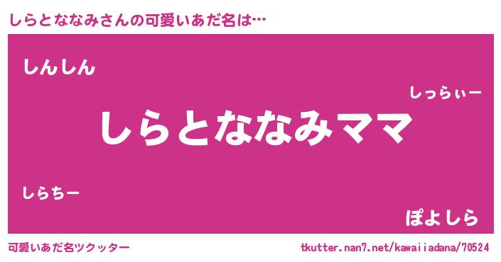 | 意味不明あだ名 | 『永久保存しらとななみ』 |