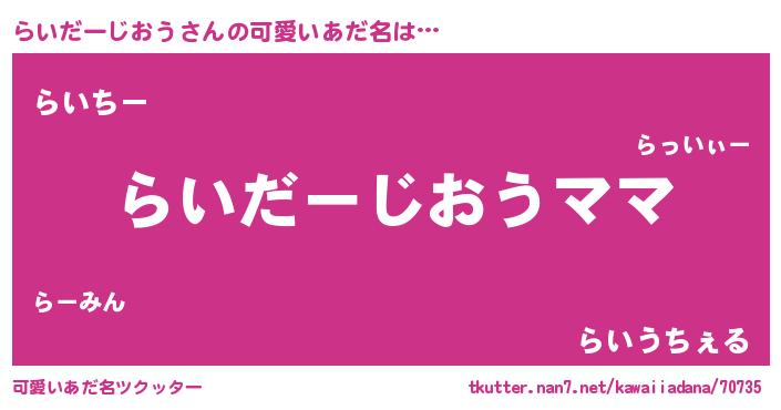 | 意味不明あだ名 | 『永久保存らいだーじおう』 |
