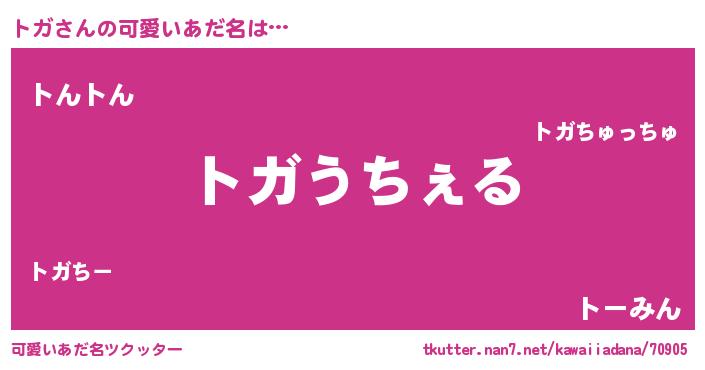 | 男性向けラノベタイトル風あだ名 | 『トガに滅ぼされるだけの簡単なお仕事です』 |