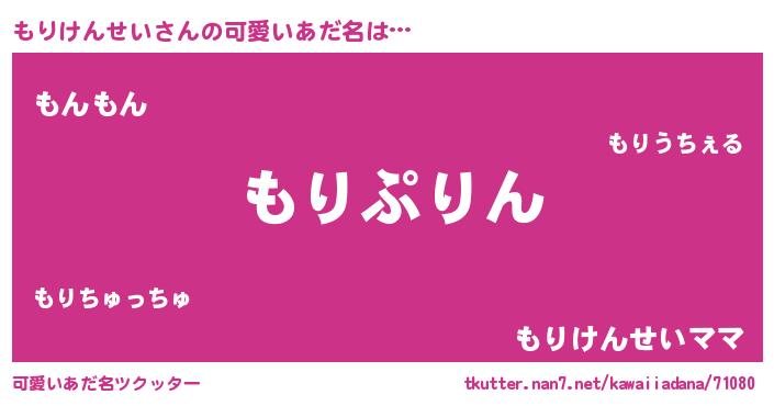 | 恥ずかしいあだ名 | 『プリティーもりけんせい』『もりちん』 |