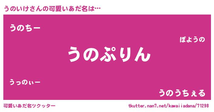 | 女子向けラノベタイトル風あだ名 | 『うのいけの玉の輿計画!』 |