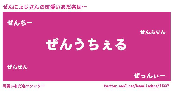 | 意味不明あだ名 | 『自称ぜんにょじ』『ペロリンぜんにょじ』 |