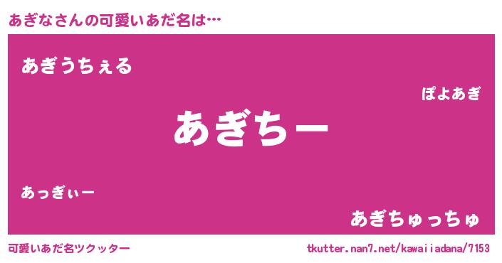 | 意味不明あだ名 | 『あぎなフォーエバー』『自称あぎな』 |