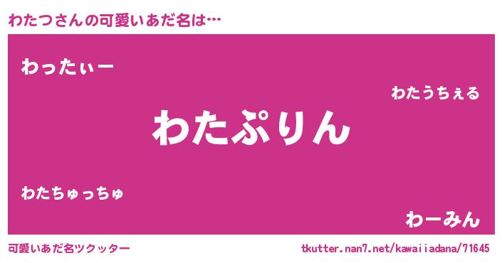 | ポケモン風あだ名 | 『ワタキング』『ヒワタツ』 |