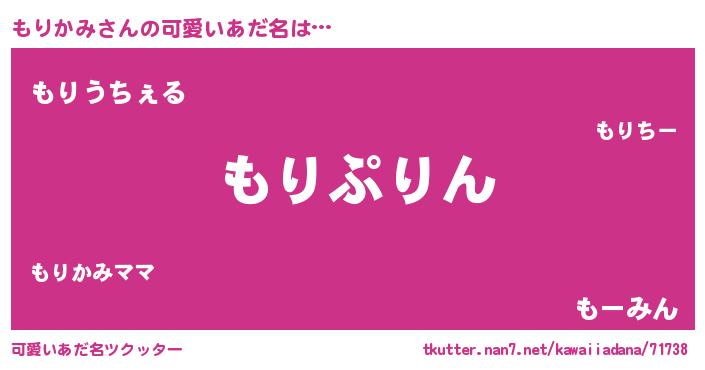 | 意味不明あだ名 | 『ヨモギ科もりかみ属』『自称もりかみ』 |