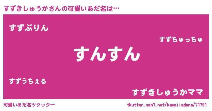 | ヘコむあだ名 | 『すずにー』『すずきしゅうか(爆)』 |