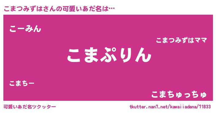 | 肩書あだ名 | 『こまつみずは上級大将』 |