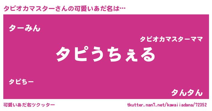 | 男性向けラノベタイトル風あだ名 | 『Re:タピオカマスターから始める異世界生活』 |