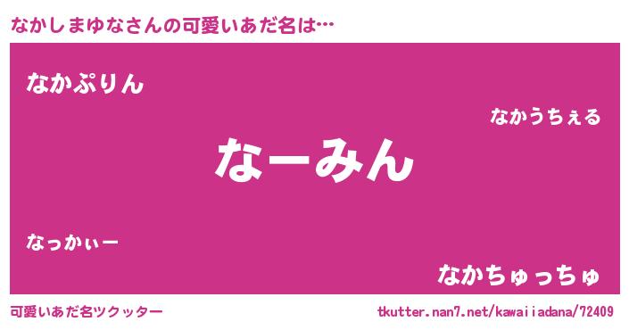 | 男性向けラノベタイトル風あだ名 | 『うちのなかしまゆなが世界を掌握している!』 |
