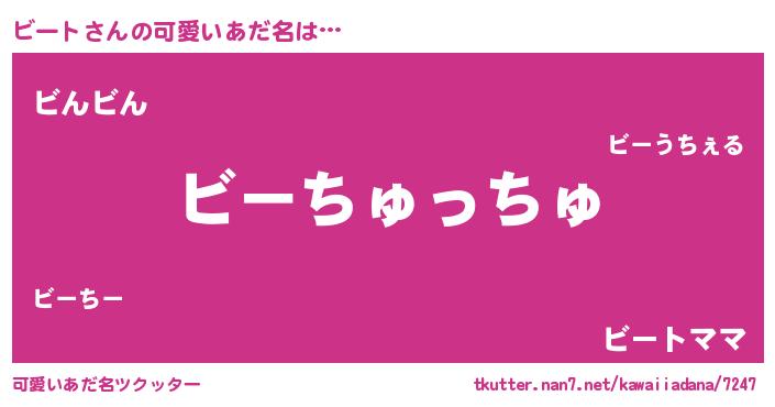 | ヘコむあだ名 | 『ビーにゅー』『ビート(爆)』 |
