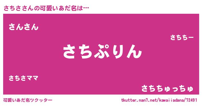| 男性向けラノベタイトル風あだ名 | 『さちさ~年齢イコール彼女いない歴の魔法使い~』 |