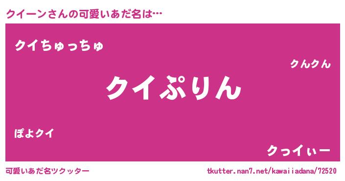 | ヒーロー風カッコイイあだ名 | 『慈愛の使者クイーン』『銀牙騎士クイ』 |