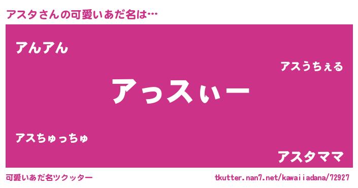 | 恥ずかしいあだ名 | 『アスリンリン』『プリティーアスタ』 |
