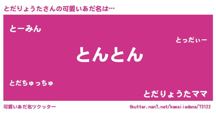 | 恥ずかしいあだ名 | 『プリティーとだりょうた』『とだちん』 |