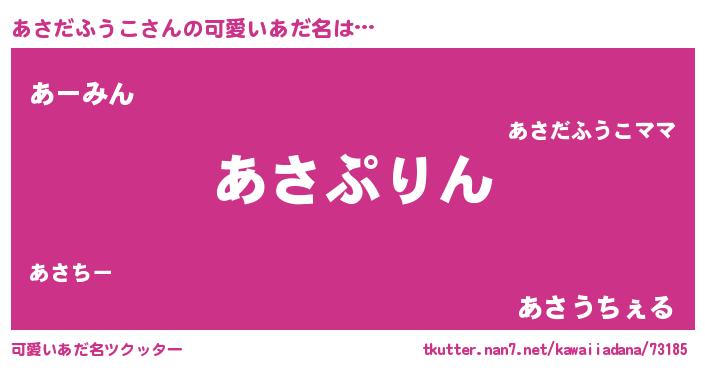 | 男性向けラノベタイトル風あだ名 | 『あさだふうこ~年齢イコール彼女いない歴の魔法使い~』 |