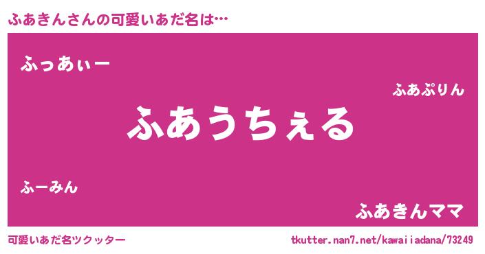 | ヘコむあだ名 | 『ふあぷりん』『ふあきん(笑)』 |