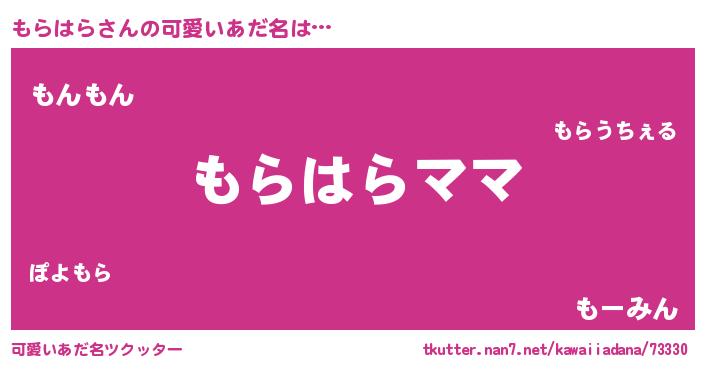 | 意味不明あだ名 | 『永久保存もらはら』『ペロリンもらはら』 |