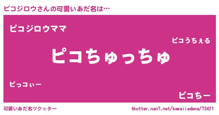 | 男性向けラノベタイトル風あだ名 | 『おまえをオタクにしてやるから、俺をピコジロウにしてくれ! 』 |