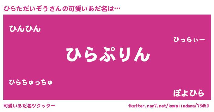 | 恥ずかしいあだ名 | 『プリティーひらただいぞう』『ひらちん』 |