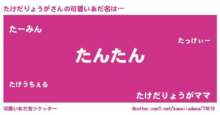 | 恥ずかしいあだ名 | 『プリティーたけだりょうが』『たけちん』 |