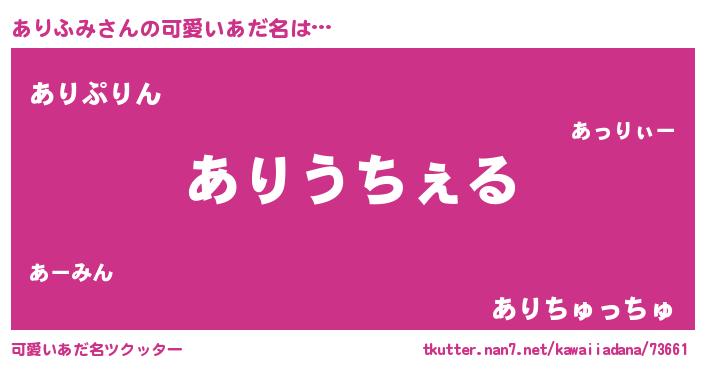 | 女子向けラノベタイトル風あだ名 | 『ありふみなんてお断りですっ。』 |