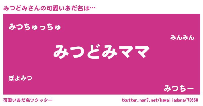 | 意味不明あだ名 | 『永久保存みつどみ』『ペロリンみつどみ』 |