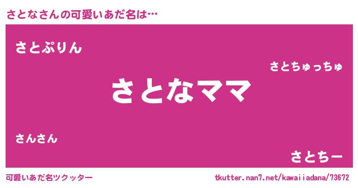| 意味不明あだ名 | 『永久保存さとな』『エリンギ科さとな属』 |
