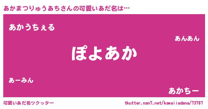 | 料理風あだ名 | 『あかまつりゅうあちのカルパッチョ風』 |