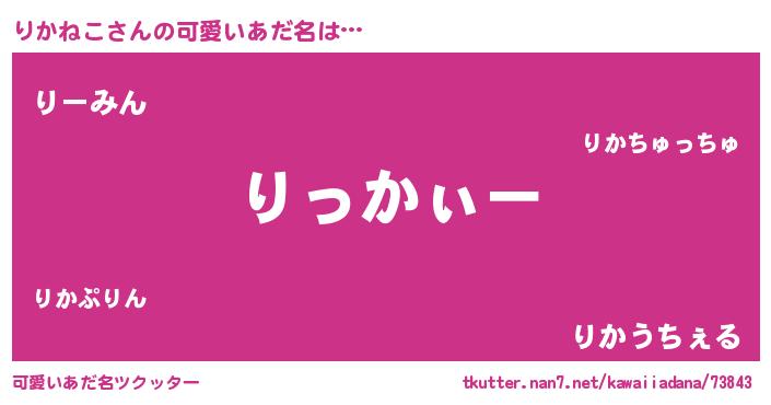 | 胡散臭い通販商品みたいなあだ名 | 『信頼と実績のサプリメント…その名も「りかねこ」』 |
