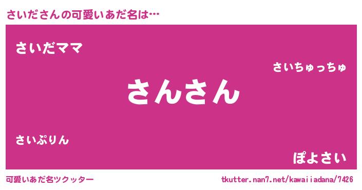| 意味不明あだ名 | 『ペロリンさいだ』『永久保存さいだ』 |