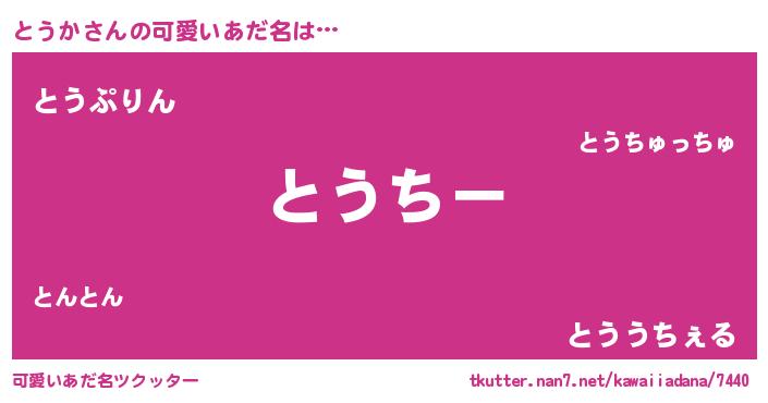 | 意味不明あだ名 | 『とうかフォーエバー』『自称とうか』 |
