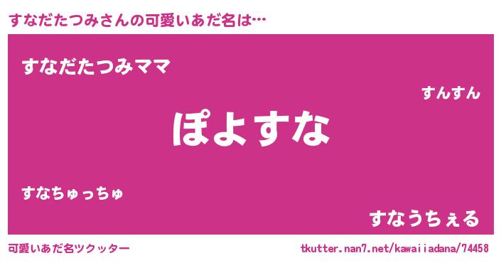| ヘコむあだ名 | 『すなだたつみ(笑)』『すなっふぃ~』 |