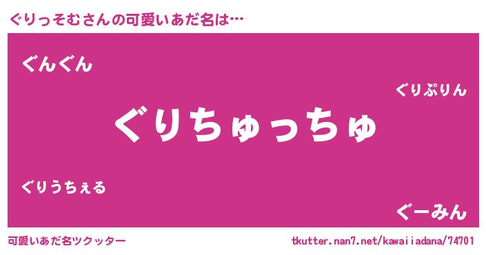 | ヘコむあだ名 | 『ぐりにー』『豆乳』『ぐりっぺ』 |