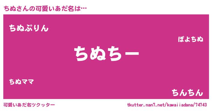 | 女子向けラノベタイトル風あだ名 | 『ちぬ伯爵の花嫁』『ちぬの玉の輿計画!』 |