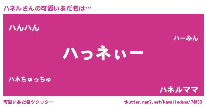 | 恥ずかしいあだ名 | 『ハネリンリン』『プリティーハネル』 |
