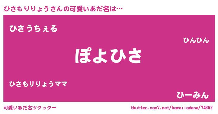 | ヘコむあだ名 | 『ひさもー』『ひさもりりょう(爆)』 |