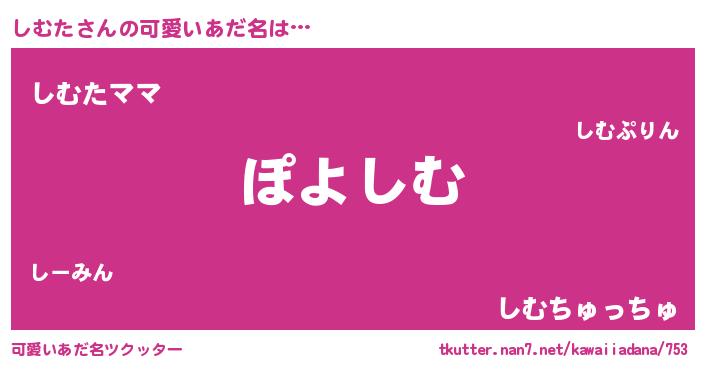 | 意味不明あだ名 | 『住所不定無職しむた(2歳)』 |