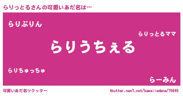 | 女子向けラノベタイトル風あだ名 | 『らりっとるなんてお断りですっ。』 |