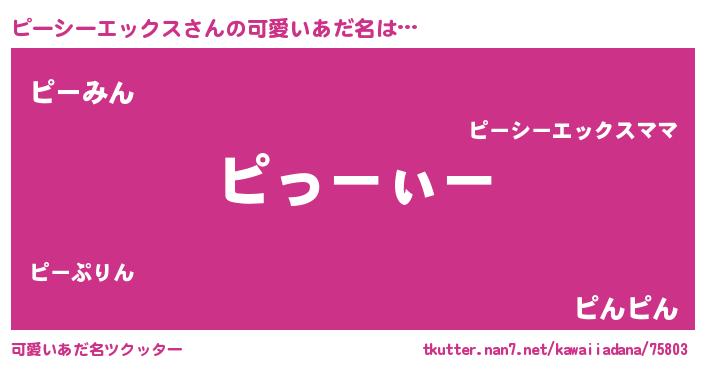 | 男性向けラノベタイトル風あだ名 | 『ピーシーエックスの嫁は女の子じゃないと思った?』 |